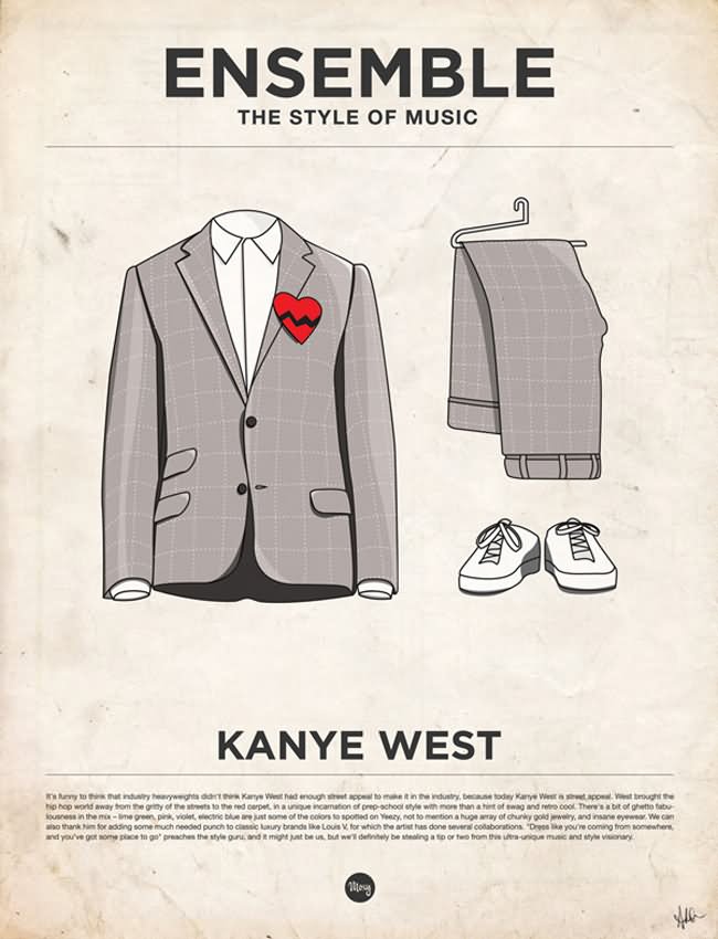 It’s funny to think that industry heavyweights didn’t think Kanye West had enough street appeal to make it in the industry, because today Kanye West is pretty much the definition of street appeal. West brought the hip-hop world away from the gritty back streets to the red carpet, in a unique incarnation of prep-school style with more than a hint of swagger.