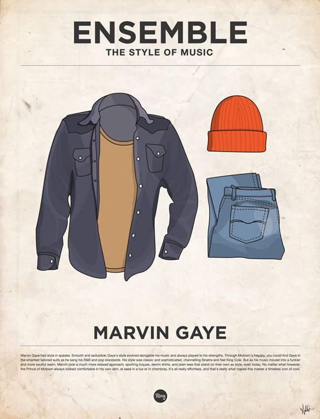 Dapper and refined with some signature funk, his styling was sleek and dignified. Throughout the 70′s and 80′s, Marvin transitioned to a much more casual approach to dress, always staying stylish, elegant, and masculine through sporting toques, denim shirts, and plain T’s.