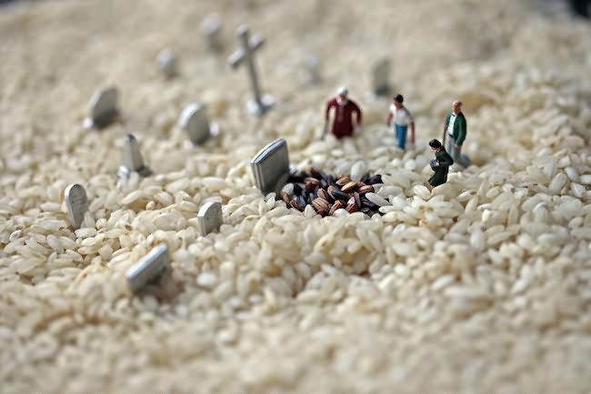 When asked about the concept, Christopher had this to say: “Coming up with an interesting image is only half the battle – a caption that will make people smile is also a big part of my work. I have always been interested in size disparity and a juxtaposition of scales between people and things ever since I owned a tiny model train world as a kid. There is in some part a god-like feeling to having command of an entire world, which you can rearrange at any capricious whim. It takes a lot of patience to make these tiny scenes as the figures are prone to falling over after they are set up. It can take up to 25 attempts to get the perfect shot.”