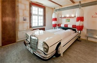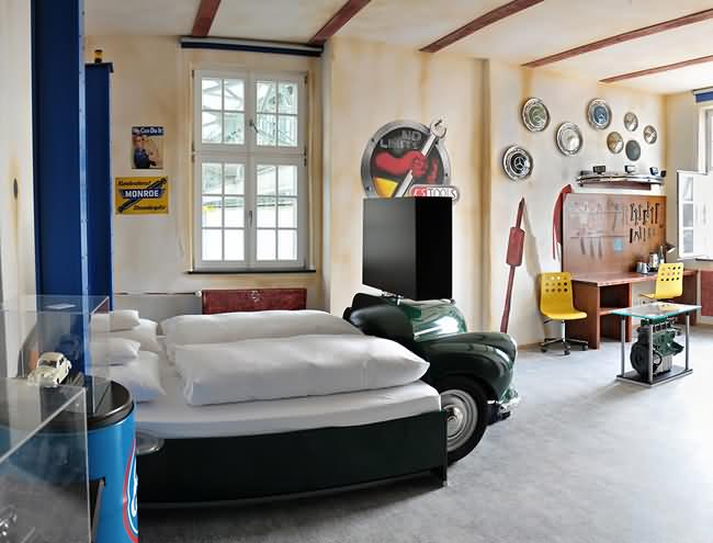 Sleeping in cars takes on a whole new meaning with a wacky twist for collector car themed rooms at a V8 hotel in Germany. The hotel is located in Stuttgart – German International Centre of automakers. Beds and rooms are made out from a real cars. It offers 23 standard rooms, 10 large rooms, and a 120sqm suite. Guests can sleep in all cars starting from Morris Minor and up to Mersedes. At $500 per night, the rooms at the V8 are not the cheapest, but that doesn’t stop guests from booking them. Which room would you prefer to stay in?