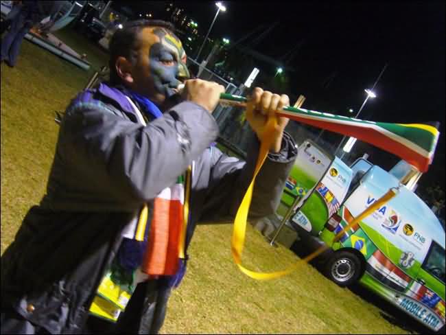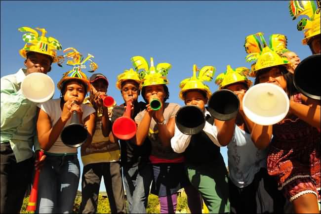 What’s plastic, a metre long and sounds like an elephant? It’s the vuvuzela, the noise-making trumpet of South African football fans, and it’s come to symbolize the sport in the country. “Without the vuvuzela, I don’t think I would be able to enjoy football,” said Sadaam Maake, one of South African football’s celebrity followers. “It brings a special feeling to the stadiums. It is something that makes the fans want to get behind their team.” The vuvuzela was originally made from a kudu horn. Folklore has it that, in the ancient days, it was used to summon people to gatherings. Over the last 15 years, the sight and sound of the instrument being blown at games has evolved into an emblem of hope and unity for many South Africans.