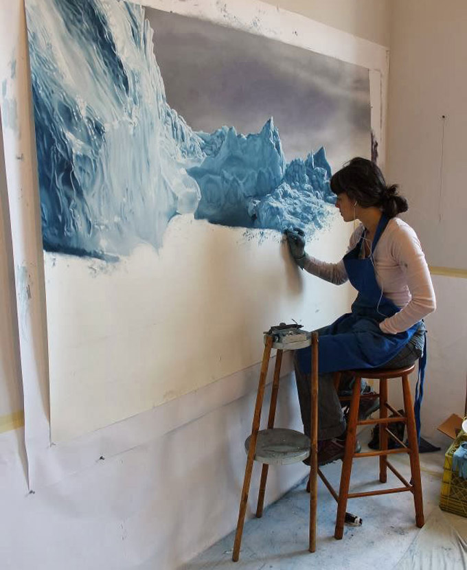Her passion is traveling and exploring the world, but it seems like that passion had run in her family for many years. Zaria Forman is an talented artist who is making her mothers dream come true. Through all her childhood, Zaria with her family traveled throughout several of the world’s most remote landscapes, which became the subject of her mother’s fine art photography. She learned to appreciate the beauty of the illuminating cold artic light in Greenland’s waters, and the monsoon rains of southern India. So it became a subject of her art.