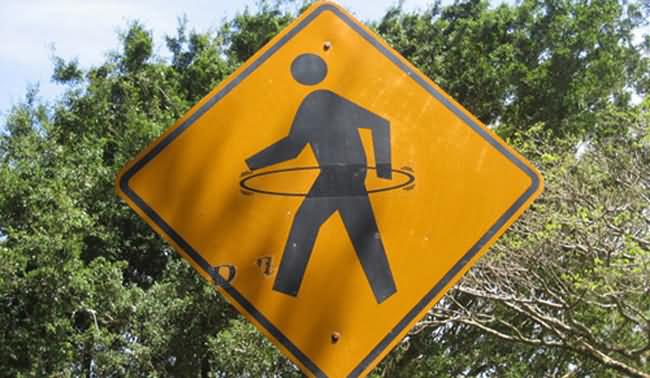 The West Coast of the United States and Canada is different from everywhere else. What we know for sure is that residents like to hug trees, eat a lot of granola, listen to The Grateful Dead and for some odd reason, wear socks with sandals. This scares us. What correlation this all has with a Hula Hoop crosswalk sign in Washington State we have yet to discover. The fact that we have not seen anyone with a Hula Hoop since 1956 is even more cause for concern.