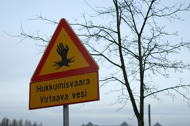 Other than China, Scandinavia takes the proverbial cake when it comes to signs that imply possible retardation. In this case, either Finland is under attack from undead cannibals or this particular town has a problem with thin ice. We doubt very much that it could be the latter, otherwise town officials would not have made a sign that could so easily draw comparisons to zombies.