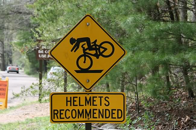 Maybe it’s just us, but from the looks of the perilous angle depicted in this sign, a helmet isn’t going to do you much good if you take a tumble on this Great Smoky road. Especially if you lack hands and fingers, let alone opposable thumbs.