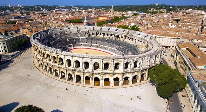 Built at the end of the 1st century AD to seat 24,000 spectators, the Arena of Nîmes was one of the biggest Roman amphitheaters in Gaul (present day France). During the middle ages a fortified palace was built within the amphitheater. Later a small neighborhood developed within its confines, complete with 700 inhabitants and two chapels. In 1863 the arena was remodeled to serve as a bullring and today it host two annual bullfights as well as other other public events.