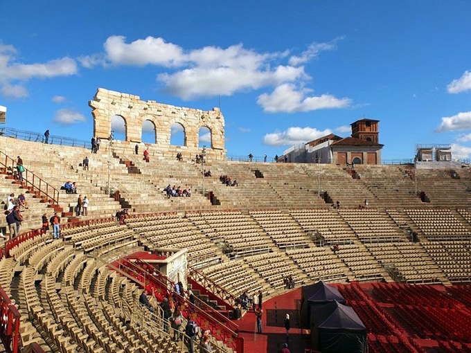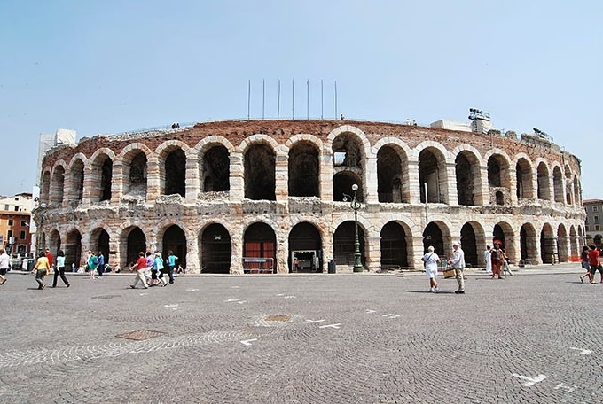 The Verona Arena in Italy is the world’s third-largest amphitheater to survive from Roman antiquity. It’s outer ring of white and pink limestone was almost completely destroyed during a major earthquake in 1117 but the inner part is still amazingly well preserved. The Arena in Verona was built in 30 AD and could host 30,000 spectators. The Roman amphitheater has been used continuously throughout the centuries to host shows and games: gladiator fights during Roman times, jousts and tournaments in the Middle Ages and from the 18th century until the present day the arena is the setting for Verona’s spectacular opera performances.