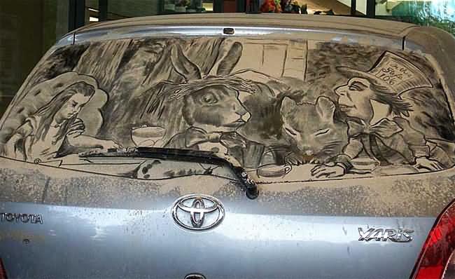 Like everyone else Scott Wade sees a dirty car and he just can’t resist drawing on it. But his artworks are unusual. You may thing why? Answer is simple, his design tools are some brushes and dirty cars. He create amazing artworks on dusty cars windows. So if near you would be Scott Wade and your car is pretty dirty, on your window would be written Einstein, Mona Lisa or some other amazing artwork.