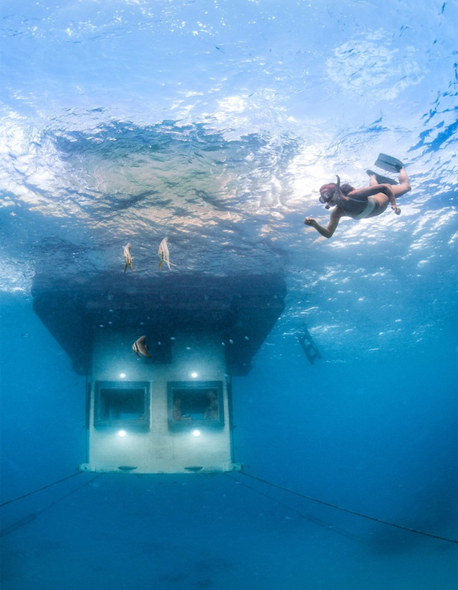 The Manta Resort is a beautiful hotel that is essentially a private architectural island. The island of Pemba floats on the Indian Ocean and takes breath away with it’s beauty. The structure is made of local hardwood and it offers three levels for resting. The visitors can enjoy the view from above, below and at the sea level. It is not only a spectacular place to rest and enjoy the inspiring surroundings, but it offers an unique underwater bedroom located four meters below the surface. Visitors are given a unique chance to sleep in a plentiful presence of aquatic creatures. Besides sleeping with exotic reef fish, visitors can climb the ladder to the top deck and dive into the water or simply stay there and soak up some sun, also, staying at the sea level to relax in the lounging area seems like a good idea. The possibilities are endless, and it’s up to guest to decide how to spend time there and have the most relaxing holiday, or an amazing adventure.
