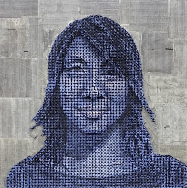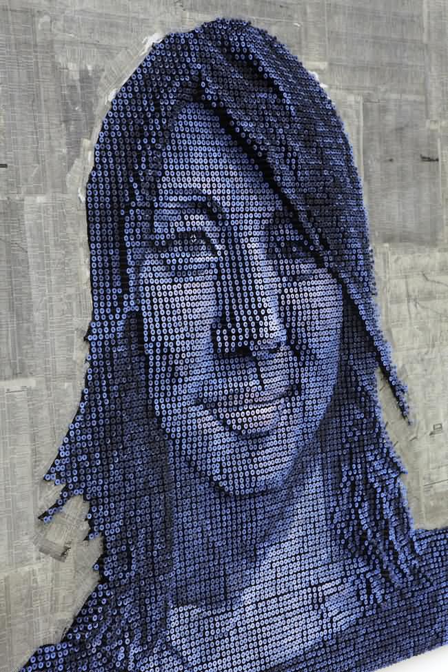 One of the most challenging parts is getting rid of the flat drawing underneath because he then has to paint over each of the screw heads, individually, so that in the end, the sculpture looks like an actual portrait.