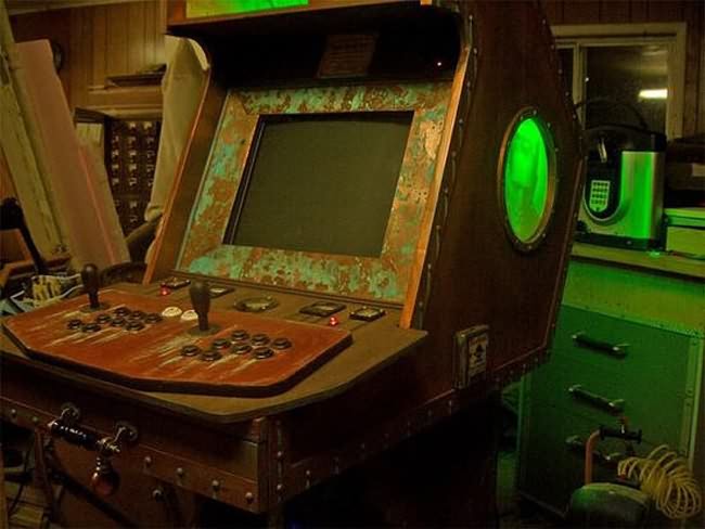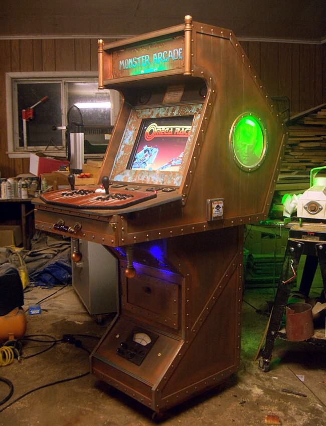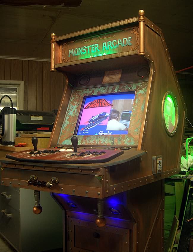 Created by Doug, a Steampunk fan with a fad for horror movies, this is a Dr. Victor Frankenstein Monster Arcade. The “MAME” />