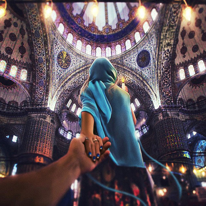 Although you can see what this girl actually looks like, you have to be in love with her, or amazed with what she represents. Wouldn’t you like to be led into journeys of life by your beloved one? On these photos you can see them (actually part of his hand and her back) at Barcelona, Spain, and stunning sight of Casa Mila. Also, in Istanbul where they are showing the beauty of Muslim culture, with her wearing sparkling dress or the blue mantle in the Blue Mosque. Weather they are in Monaco, watching sunrise, in London visiting modern art installations or New York, just walking down the Times Square, Osmann keeps a visual record of their escapades as he trails behind his beloved. This movement is spreading it’s influence really fast because it’s strength is based on love and imagination, so we hope to see more of these photos soon.