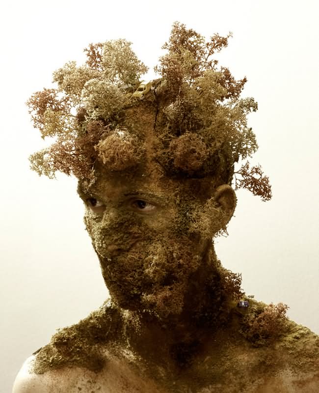 This 4-piece series reinterprets the traditional landscape painting, removing plots of grass, clusters of trees, babbling brooks from their intimate 2 dimensional formats and transposing them onto the 3 dimensional contours of his own face. Thus a fresh twist is given to the obsession inherent in the romantic landscape of recreating the world and simultaneously being part of it. The romantic landscape and self-portrait genres are combined as a means of re-examination. Besides the four landscapes, Levi van Veluw will also present a new video piece, landscape installation and works from two other series of photographs.
