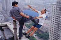 Li Wei states that these images are not computer montages and works with the help of props such as mirror, metal wires, scaffolding and acrobatics. More