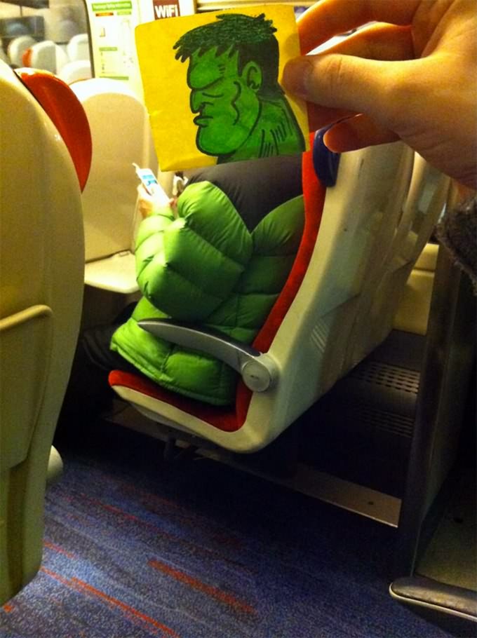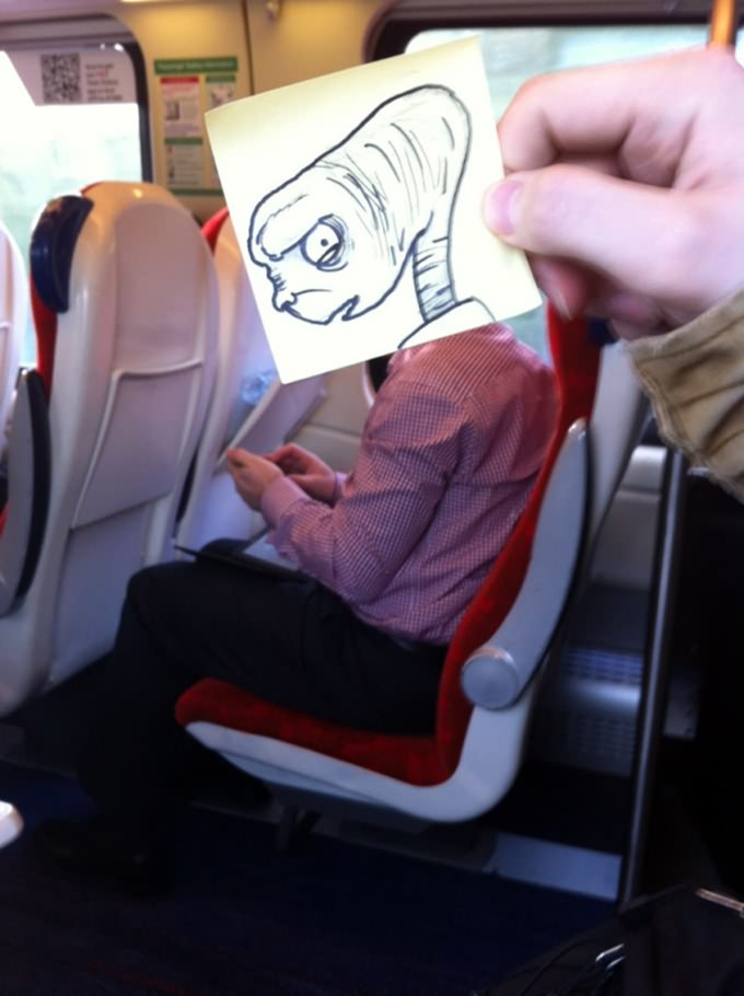 During our commute, most of us will resort to listening to music, reading, or staring at the window and pondering the meaning of life. But illustrator Joe Butcher, has come up with a creative way to spend his time, he draws new heads for his fellow commuters. Sure the drawings are pretty silly, but why not have a good time commuting right? Try this next time you’re on a bus, train or subway, and share the results!