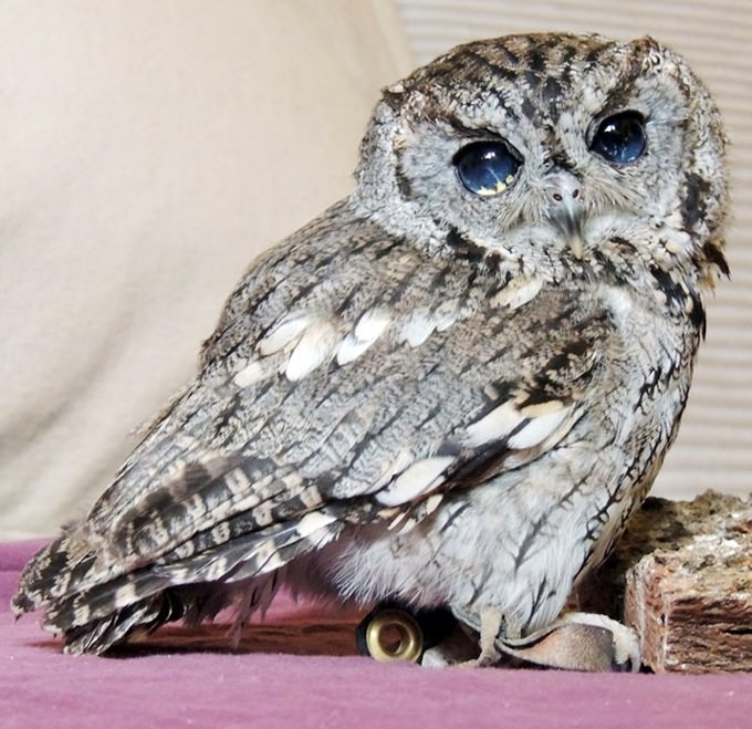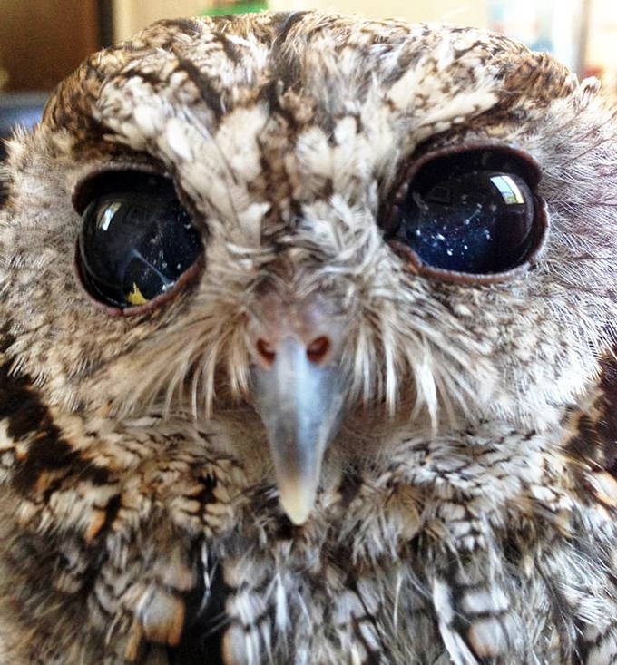 This is Zeus, a blind starry-eyed owl who currently lives at the Wildlife Learning Center, Sylmar, California. Owls are incredible creatures that we don’t get to see up close and personal all too often. For one, they are excellent at camouflaging during the day, hiding in trees with their eyes closed tight so that you can pass one and never even know they are there. So you can imagine the surprise one Southern California family got one morning when they opened their door and found an injured owl on the porch.