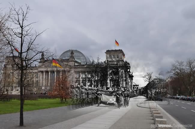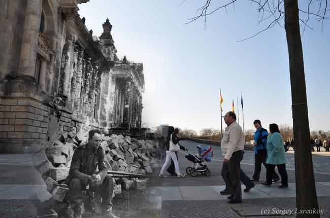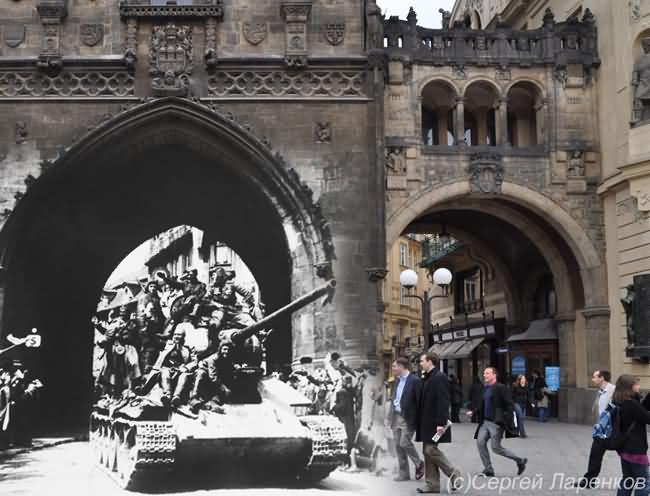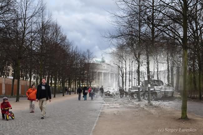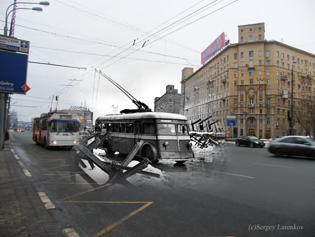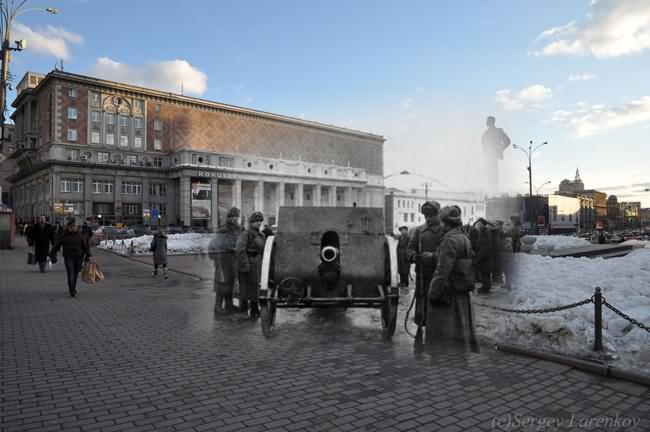 Russian photographer Sergey Larenkov is a master of a technique called, alternatively, perspective-matching photography or the fancier computational rephotography, which consists of precisely matching the points-of-view of vintage and modern photographs and exploring what happens where they merge. Combining old imagery with new may not be a revolutionary concept but Sergey has found a way of using the idea to great effect. Taking old World War II photos, he carefully photoshops them over up-to-date pictures of well known areas in cities such as Moscow, Berlin, Prague and Viennna to make the past come alive.