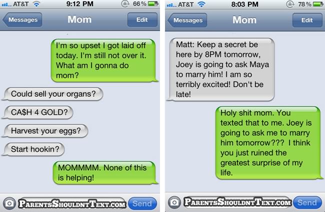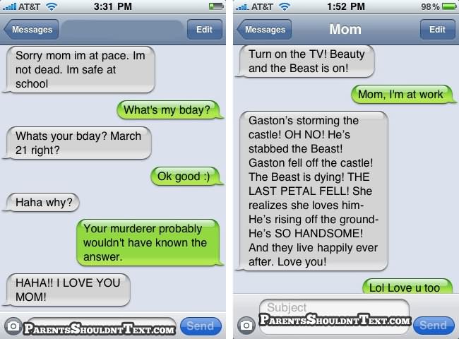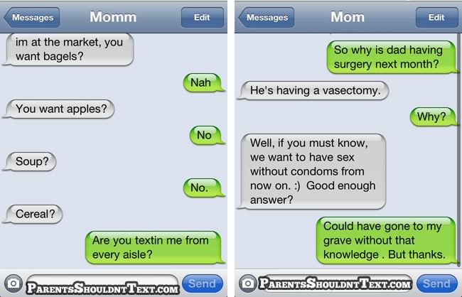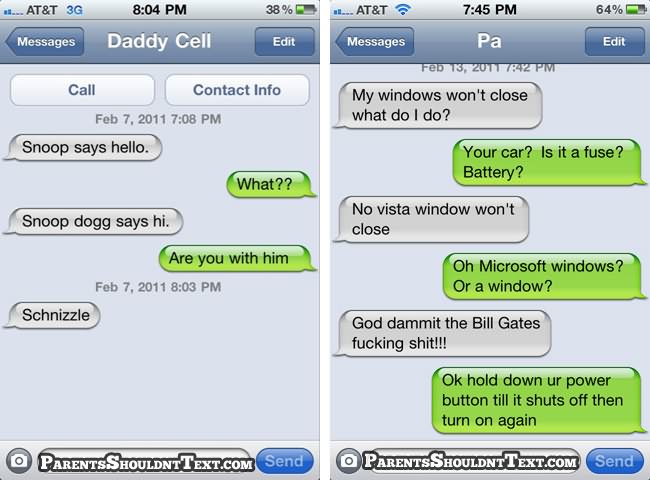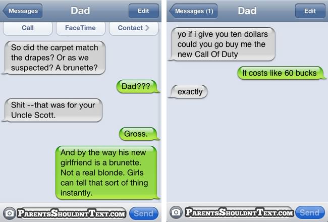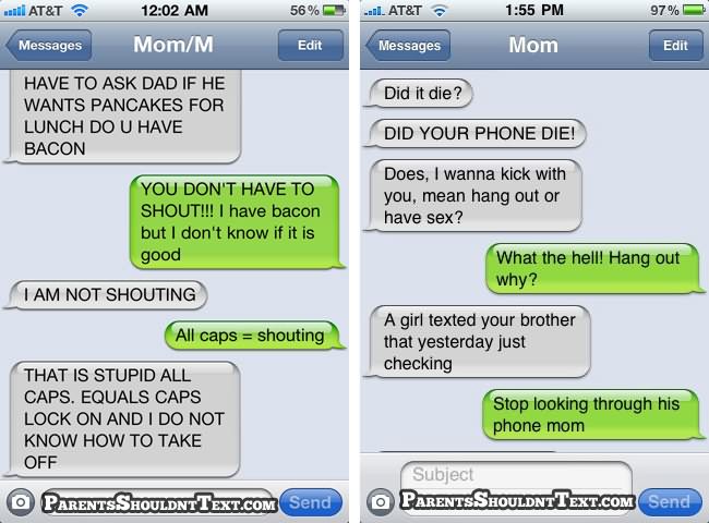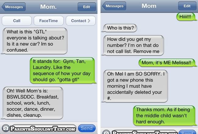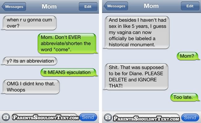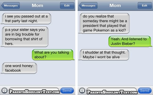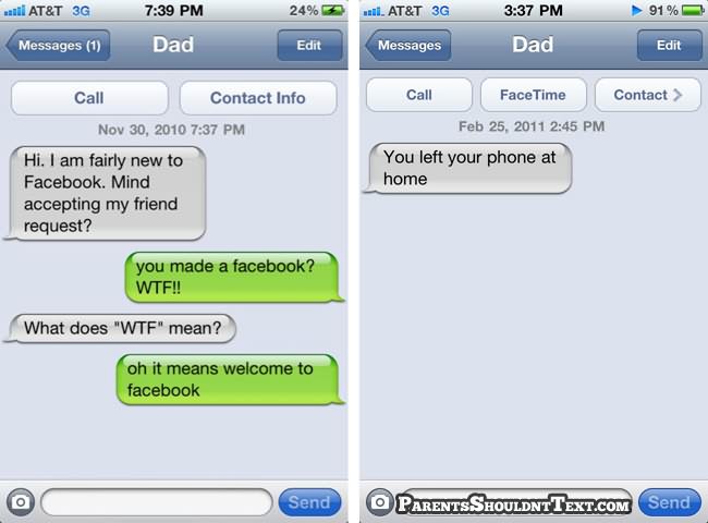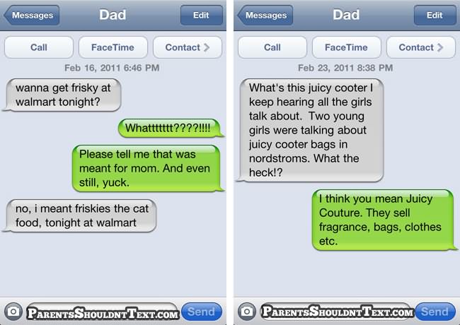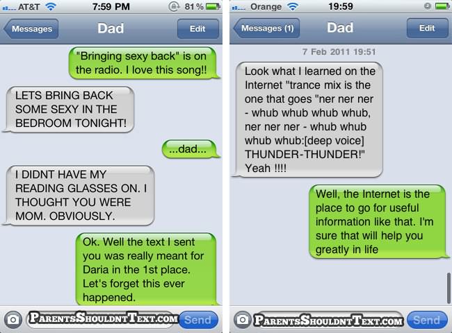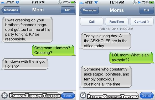 A new website called Parents Shouldn’t Text highlights some of these parental texting disasters and below you can see some of the best. If you need a giggle in your day, go to that website for few minutes…