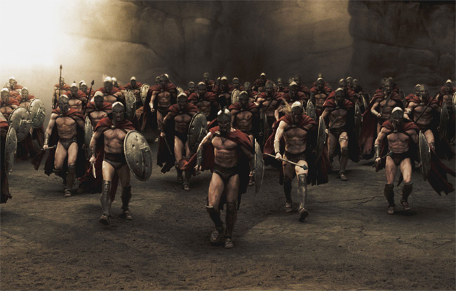 8. In the movie “300”, 90% of the time scenes were shoot by using blue screen and 10% green screen. In whole movie there was just one scene shoot in an open air, which was for the horses that were shot for the ‘approaching Sparta’ scene.