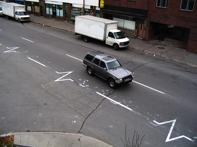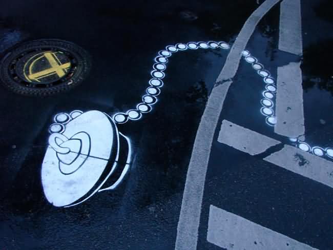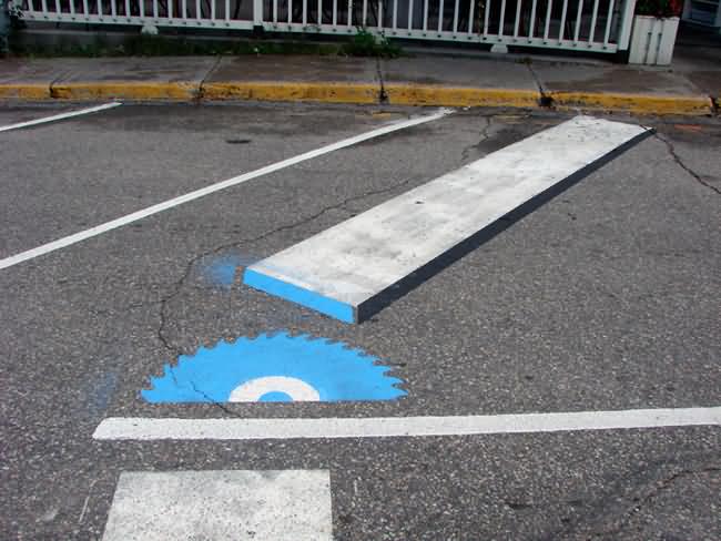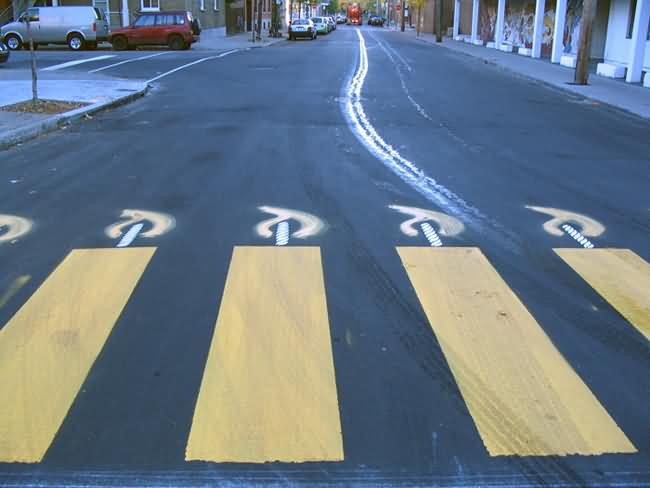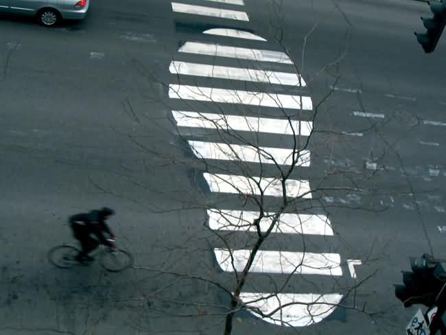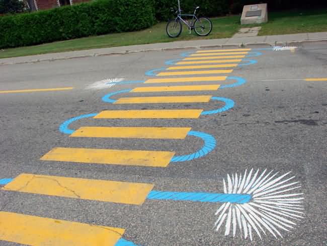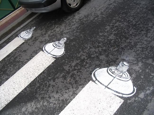 In 2004 Roadsworth was arrested for these activities and charged with 53 counts of mischief for his “graffitti”. He received a lenient sentence mostly because of the public support he received. Here some more pics of Roadsworth art: