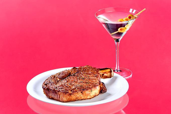 RUTH’S CHRIS STEAKHOUSE Cowboy Ribeye steak (1,690), martini (230).